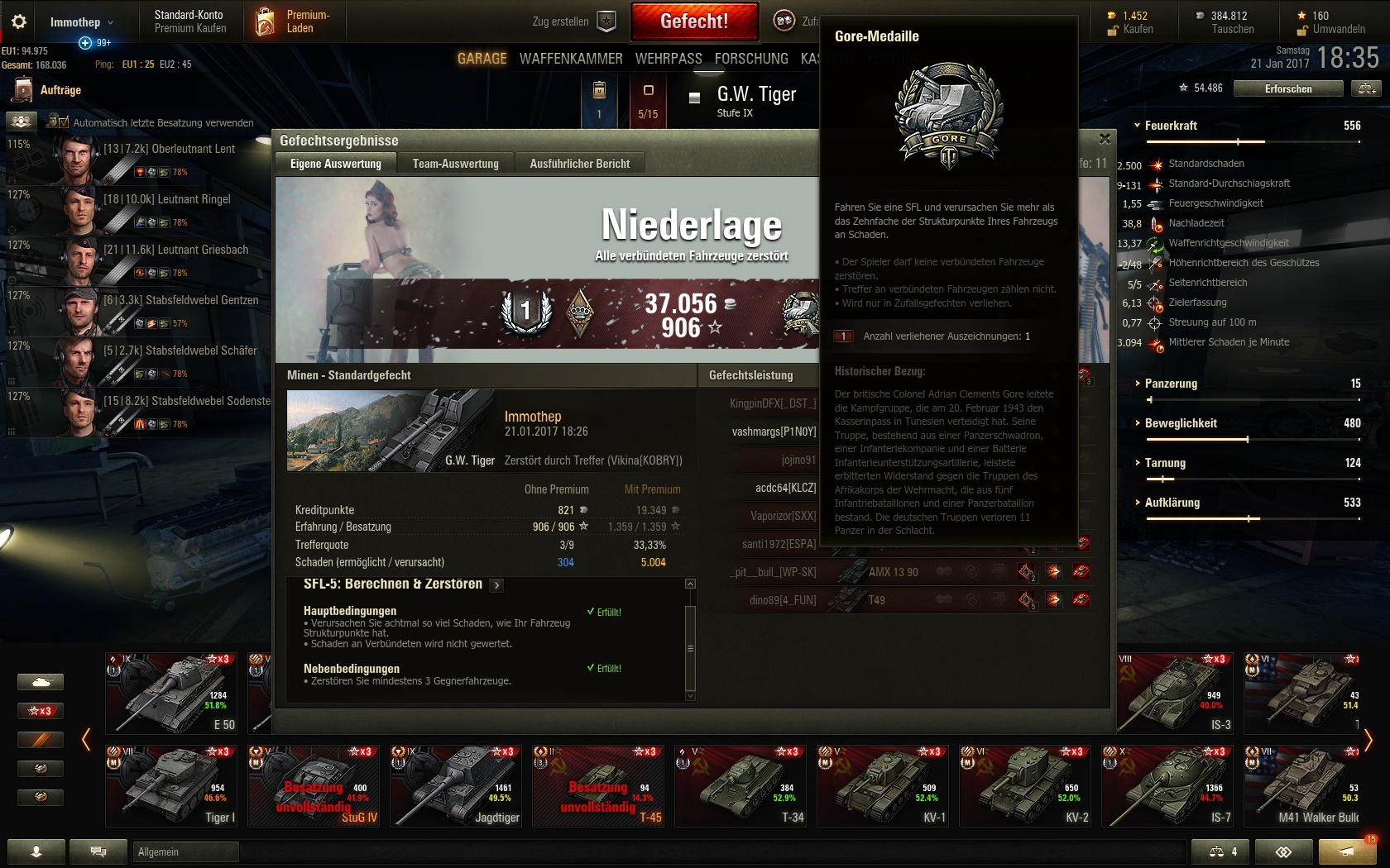 Endlich die Arty Mission erfüllt, 8x mehr Damage als man Strukturpunkte hat und eine bisher bei mir einzigartige Auszeichnung, die Gore Medaille bekommen. Knapp geschafft und doch das Spiel verloren. 5k Damage.