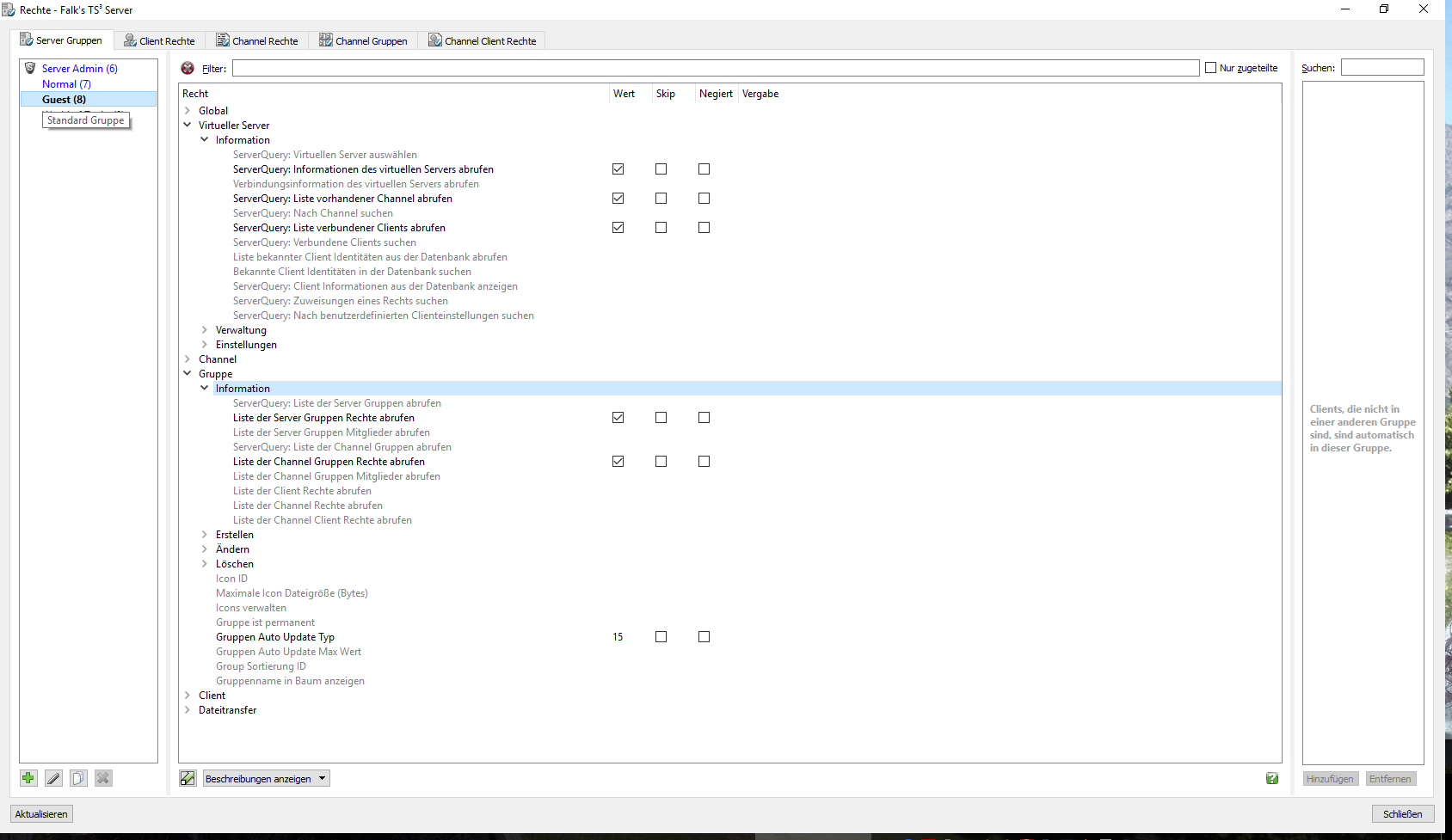 Rechteanpassung eines neu installierten TS³ Server damit TS Viewer darauf zugreifen können.